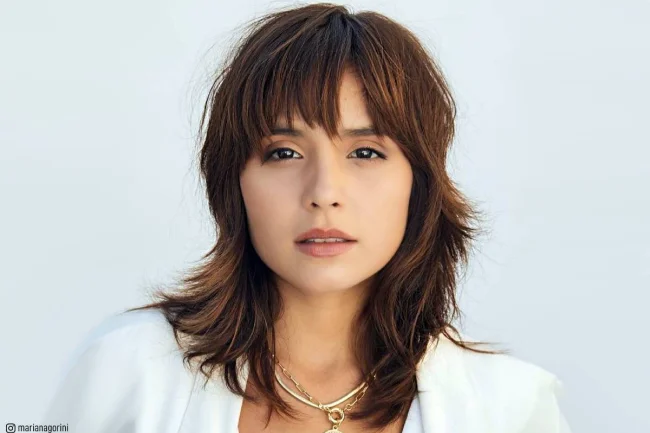 This timeless version features medium-length layers and soft, wispy bangs that frame the face beautifully. Ideal for straight or slightly wavy hair, the classic wolf cut emphasizes a natural, laid-back aesthetic.